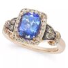 A striking cushion-cut Blueberry Tanzanite? (2 ct. t.w.) makes a cool contrast to the warm tones of Nude? (1/3 ct. t.w.) and Chocolate Diamonds? (1/8 ct. t.w.) set in rich 14k Strawberry Gold?